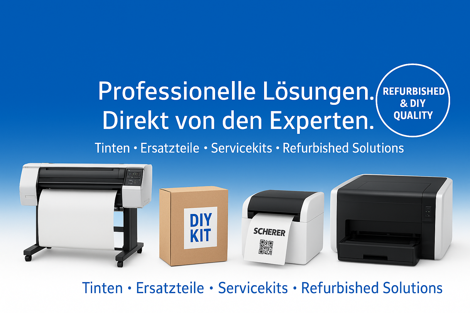 Mit unseren kompletten DIY & Servicekits, geprüften Refurbished-Geräten und spezialisierten Werkstattlösungen kannst du deine Drucker, Plotter und Textildrucker schnell, sicher und nachhaltig wieder einsatzbereit machen.
